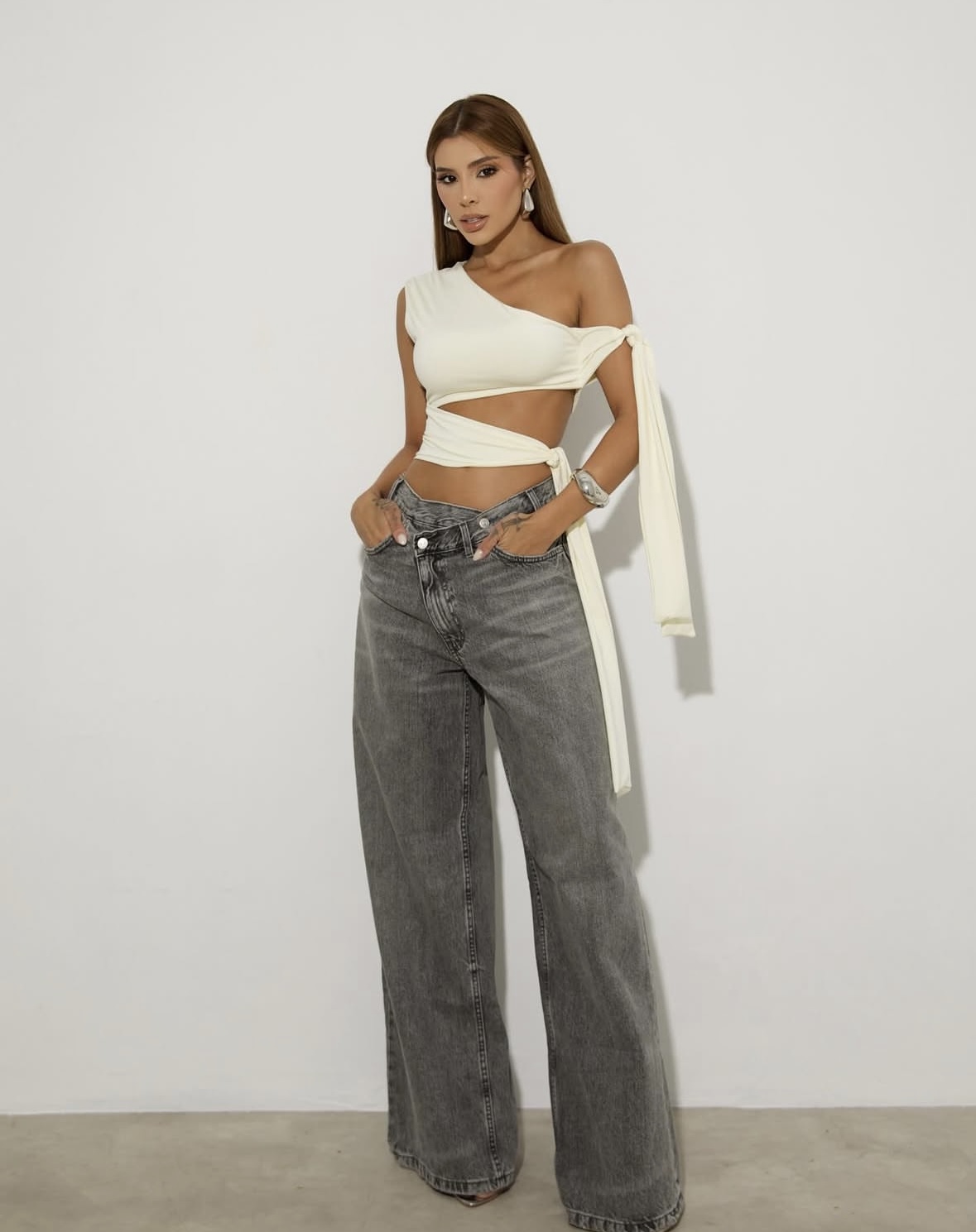 Ele possue uma modelagem perfeita e super diferente,veste P e M.